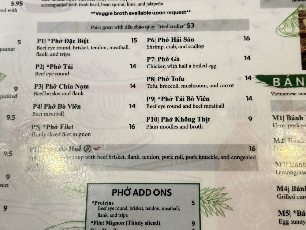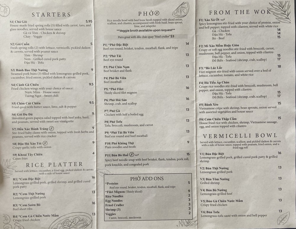 Pho@University Menu